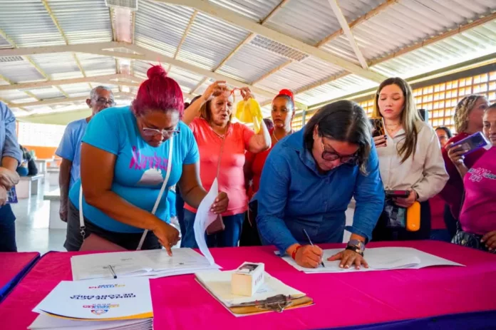 Este viernes la alcaldesa bolivariana, Ana González, formalizó la Firma de Acta de Convenio para el traspaso de recursos y la ejecución del segundo proyecto de cada circuito comunal y comunas del municipio Naguanagua que resultó electo durante la Primera Consulta Popular Nacional 2025. Además, anunció la creación de una Ordenanza relacionada con la transferencia de competencias al poder popular por parte del Ejecutivo Municipal.