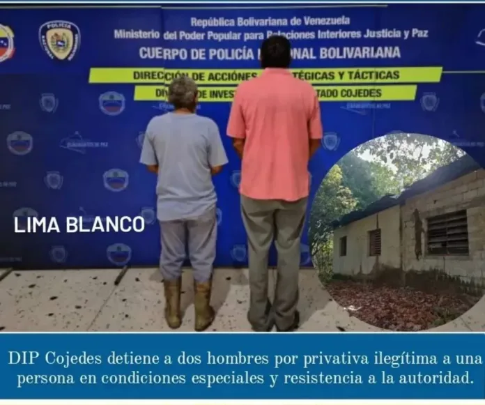 La dirección de Investigaciones Penales (DIP), capturó a dos hombres por privativa ilegítima de una persona en condiciones especiales y resistencia a la autoridad en el municipio Lima Blanco del estado Cojedes.