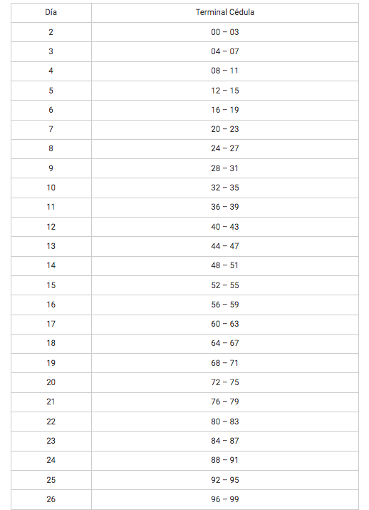 La asignación se realizará entre los días 2 y 26 , y se realizará de la misma manera durante todos los meses, tomando como referencia los últimos dos números de la cédula de identidad.