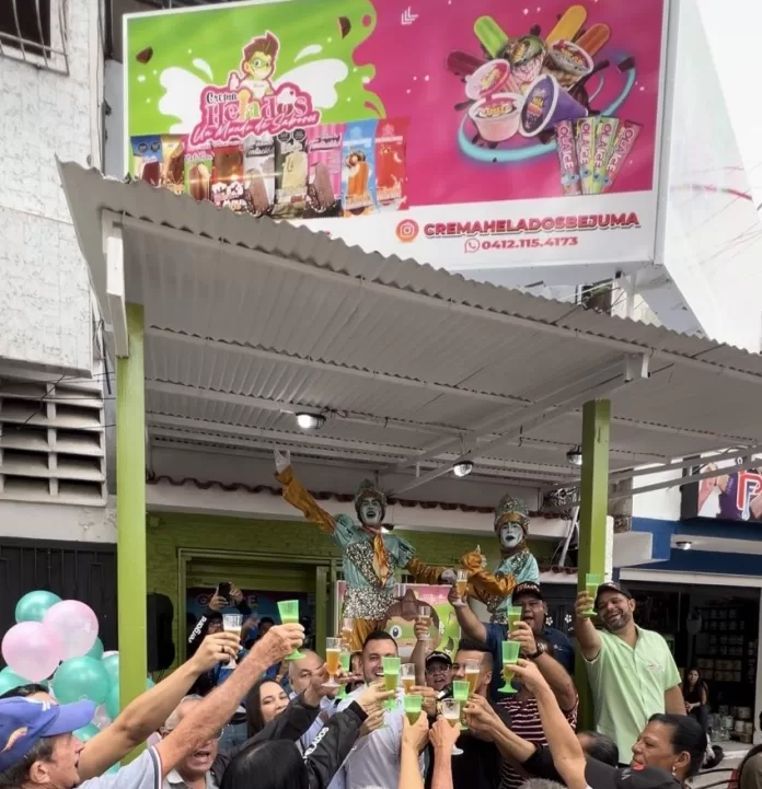 En medio de un ambiente de música y zanqueros, vecinos del casco central de Bejuma se apersonaron para presenciar el corte de cinta y acompañar a los representantes de Crema Helados, su presidente Marco Toro y su esposa Luz Marina de Toro; el gerente nacional de ventas, Luis Ojeda y Juan Ramírez, responsable de la nueva franquicia, quienes fueron anfitriones durante esta apertura.