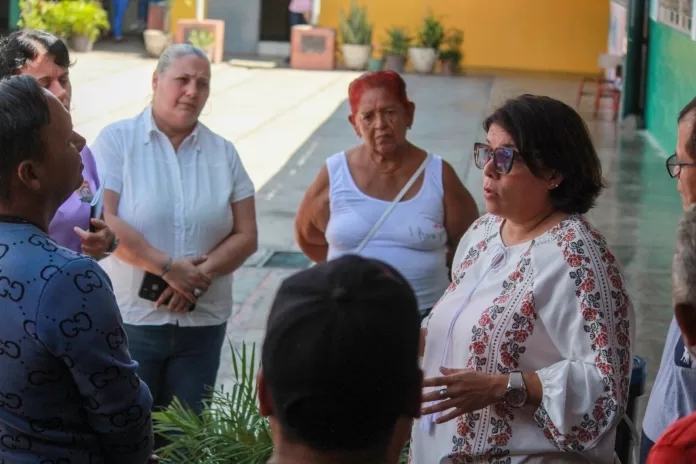 En compañía de representantes del poder popular, milicia, docentes, y el director del plantel, la alcaldesa de Naguanagua, Ana González, supervisó la entrega de los materiales que servirán para recuperar algunos espacios como aulas de clase, techos, baños, áreas comunes, así como pupitres, mesas y sillas, entre otros.