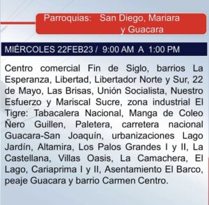 Mediante su cuenta de Instagram, Corpoelec Carabobo anunció que este miércoles 22 de febrero suspenderá el servicio eléctrico en sectores de San Diego, Diego Ibarra y Guacara como parte de un mantenimiento programado.