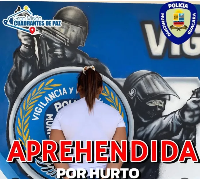 Efectivos de la Policía Municipal de Guacara (Iampogua), capturaron a una mujer que hurtaba víveres y licores del Supermercado “Kozmos”.