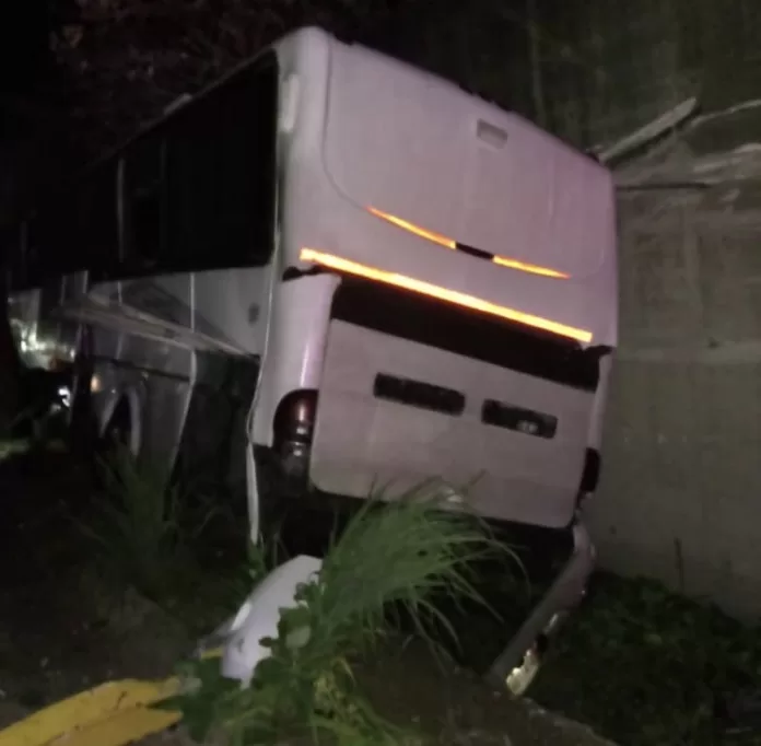En el hecho se reportó un lesionado en el que un bus habría chocado con la defensa metálica para posteriormente quedar encunetado.