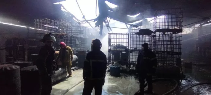 La empresa de químicos Canirui, ubicada en La Quizanda registró pérdidas en gran parte luego del incendio. Los bomberos hacen en la actualidad labores de refrescamiento en el lugar e inspeccionan el hecho.,