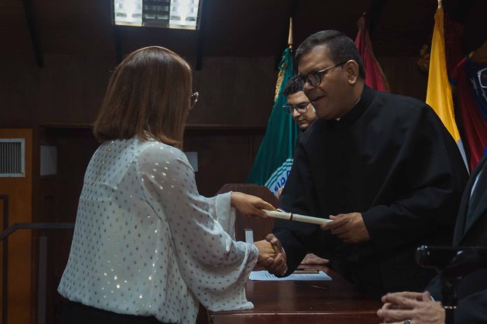 Dicho acto académico estuvo presidido por las autoridades de ambas instituciones, encabezada por el Rector de la Universidad Arturo Michelena, Dr. Giovanni Nani Lozada, seguido por el Director del Instituto Teológico Gaudium, Padre Luis Eduardo Martínez, quienes reconocieron el esfuerzo y la dedicación de los graduandos.