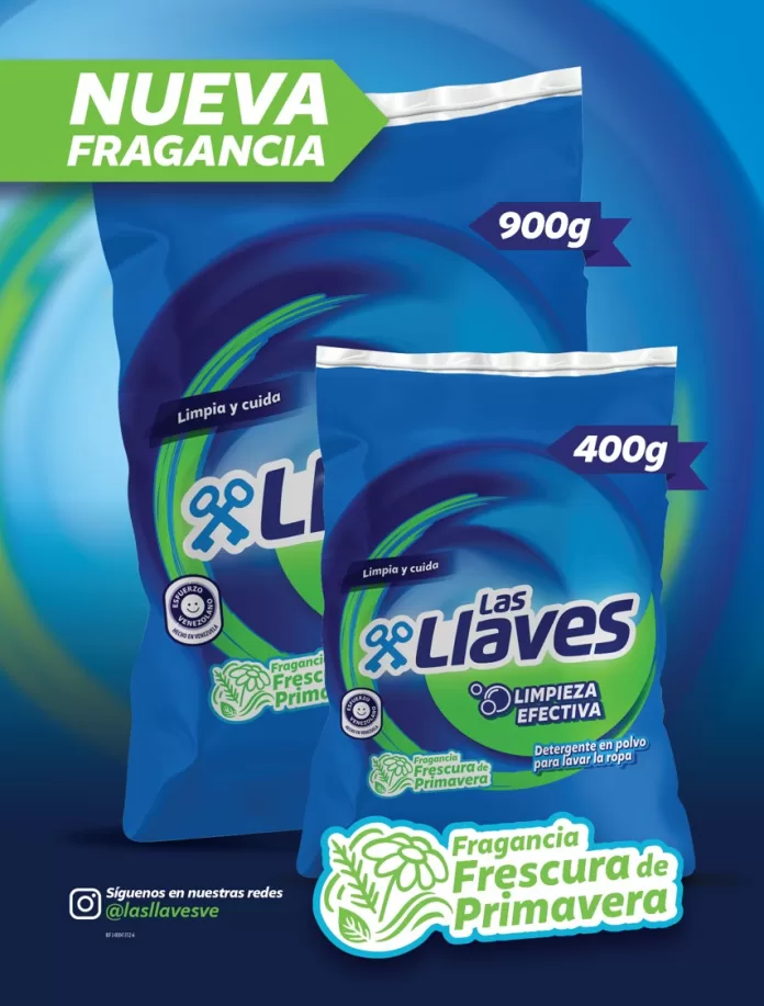 “Al igual que las otras fragancias de Las Llaves, nuestro nuevo detergente en polvo mantiene los beneficios de limpieza efectiva, agradable aroma y cuidado de tejidos con el respaldo único de Las Llaves”, explicó Ana Carolina Vidal, gerente de Grupo de Marcas de Empresas Polar.