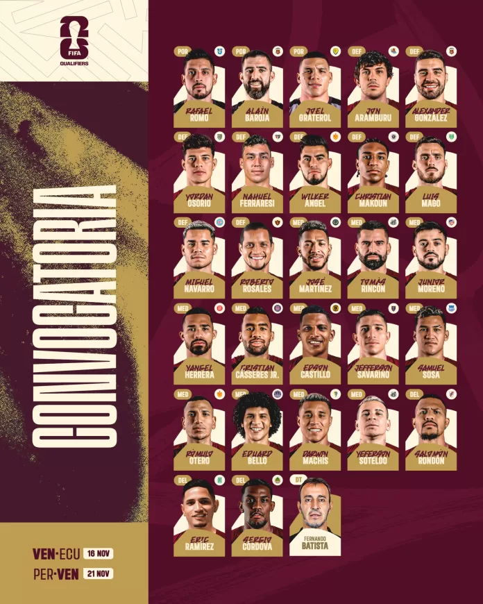 Estos son los elegidos por el DT Fernando Batista para enfrentar a Ecuador 🇪🇨 y Perú 🇵🇪 en las Eliminatorias Sudamericanas para la Copa Mundial de la FIFA 2026.