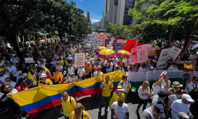 Centenares de ciudadanos se dan cita en las calles de Colombia para protestar en contra de las reformas que busca aprobar el gobierno del presidente Gustavo Petro en la llamada Marcha de la Mayoría.