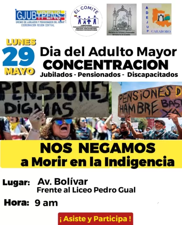 Diferentes gremios de trabajadores, pensionados y jubilados, que están indignados por la precaria situación económica que se vive en el país, anuncian movilizaciones a nivel nacional el Día del Adulto Mayor, que se conmemora el lunes 29 de mayo.