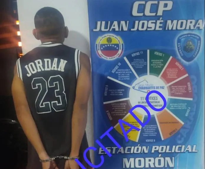 Un ciudadano quedó retenido por funcionarios de la Policía de Carabobo cuando realizaban patrullaje preventivo por la calle principal de la comunidad de Santa Rita del municipio Juan José Mora, este miércoles 29 de marzo en horas de la tarde.