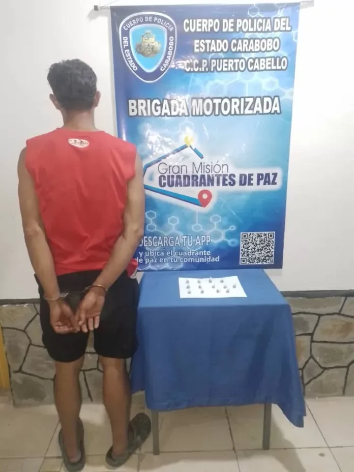 Sofia de Sánchez. Funcionarios de la Brigada Motorizada del Cuerpo de Policía de Carabobo destacados en el municipio Puerto Cabello, realizaron la detención de un sujeto con presunta droga, cuando cumplían labores de patrullaje por el sector uno del canal de la urbanización San Esteban, parroquia Bartolomé Salom.