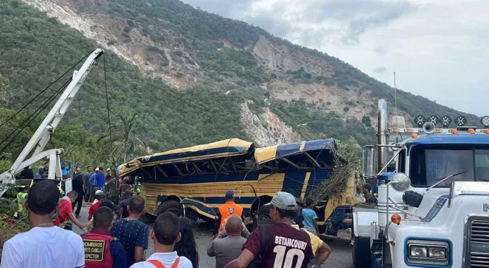 Recuperar el autobús volcado la tarde de este domingo en la cumbre de la vía Patanemo – Gañanago que dejó un saldo de cuatro fallecidos y 28 heridos adultos, requirió más de una hora de trabajo efectuada por los funcionarios de seguridad.