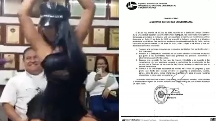 Autoridades de la Universidad Nacional Experimental Simón Rodríguez destituyeron a la directiva del núcleo de Palo Verde por un video viral en el que salen junto a una stripper celebrando el Día del Padre.
