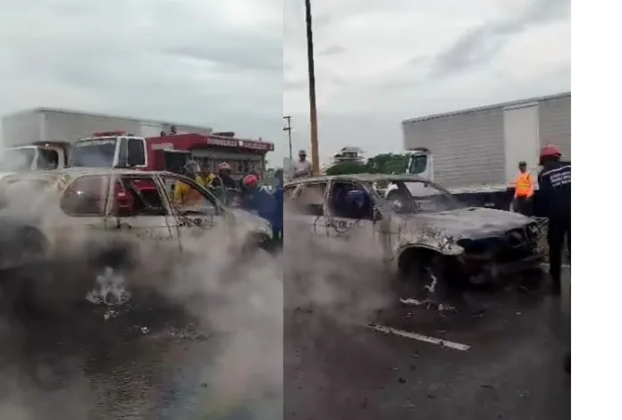 En un videos compartido en redes sociales se observa cómo el vehículo fue consumido por completo. Hasta el momento no se reportaron heridos.