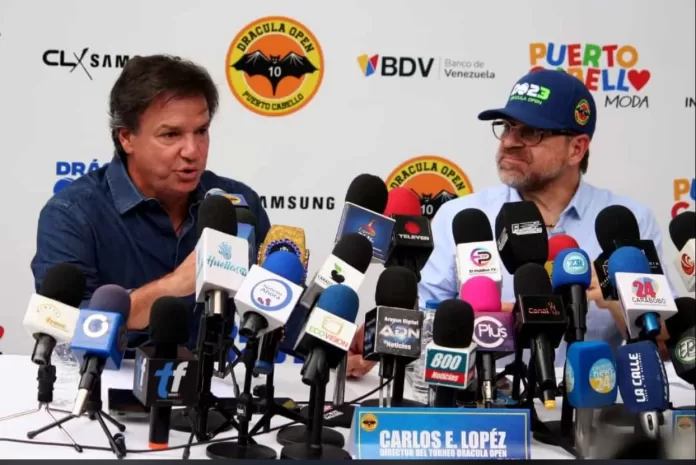 Durante la rueda de prensa, el mandatario estuvo acompañado de Carlos Eduardo López, director de la organización Drácula Open.