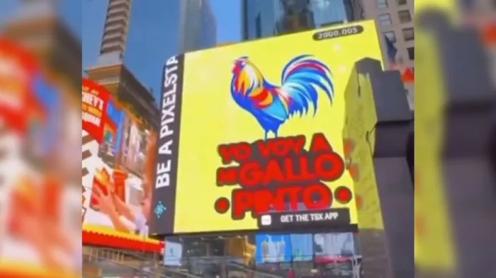 La imagen electoral del candidato del Gran Polo Patriótico, Nicolás Maduro, conocido como “Gallo Pinto”, se proyectó en las pantallas del Times Square de New York, Estados Unidos (EEUU).