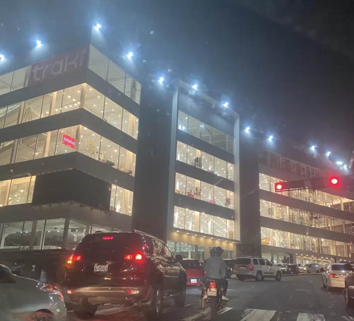 Durante el fin de semana fueron varias las quejas de los vecinos a través de las redes sociales, entre ellas destaca la contaminación lumínica que producen los faros que están en la entrada del Traki, que molesta a los residentes de edificios ubicados frente al comercio.